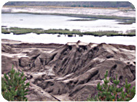 Auf den älteren, sauren, tertiären und dadurch unwirtlichen Bodenschichten siedeln sich auf lange Sicht keine Pflanzen an. Selbst Steine zersetzen sich. Irgendwann in ferner Zukunft werden diese Böden wieder fruchtbar, allerdings dreht es sich dabei um geologische Zeiträume, nicht um menschliche. |